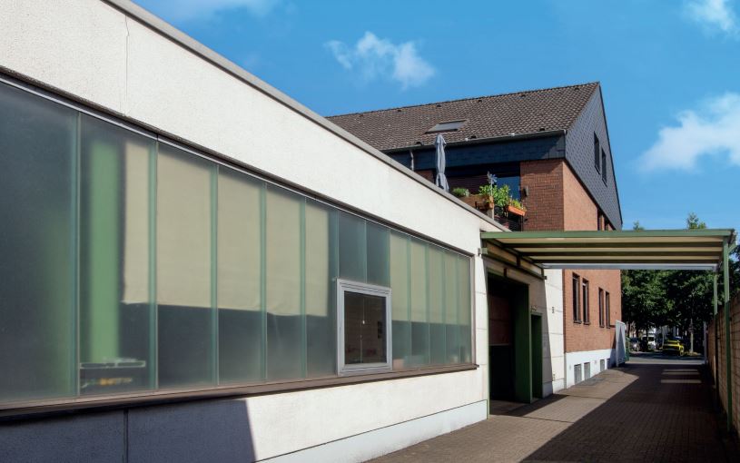 Die Umgebung ist von einem Gewerbegebiet mit angrenzendem kleinen Wohnviertel aus Mehrfamilienhäuser und Doppelhaushälften geprägt.